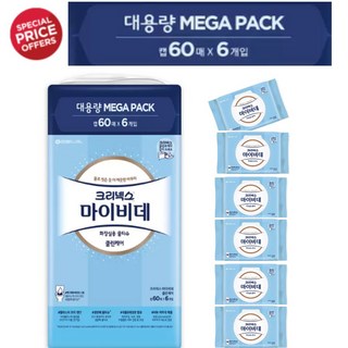 크리넥스 마이비데 물티슈 60매 x 6팩 대용량 MEGA PACK 화장실용 물티슈, 1세트, 360매, 143g
