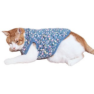 고양이 할매 김장조끼 꽃무늬 누빔 옷 반려묘 강아지 김장룩, S, 하늘, 1개