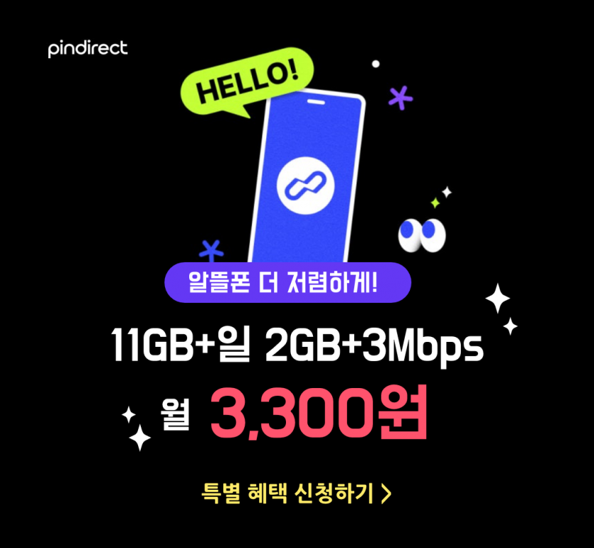 핀다이렉트SK 알뜰폰 11기가+2기가+3mps 550원