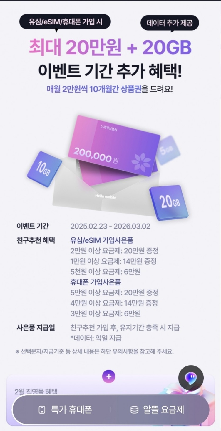 LG헬로모바일/헬로비전 매달 상품권 10개월간 25000원 혜택