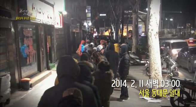 추운 새벽 판매점에서 보낸 문자를 받은 손님들이 모여든 것이죠