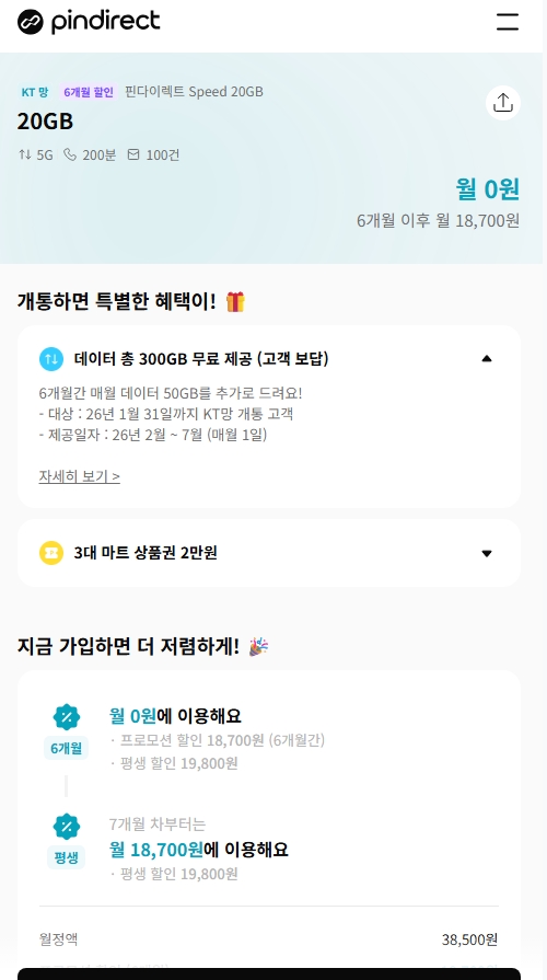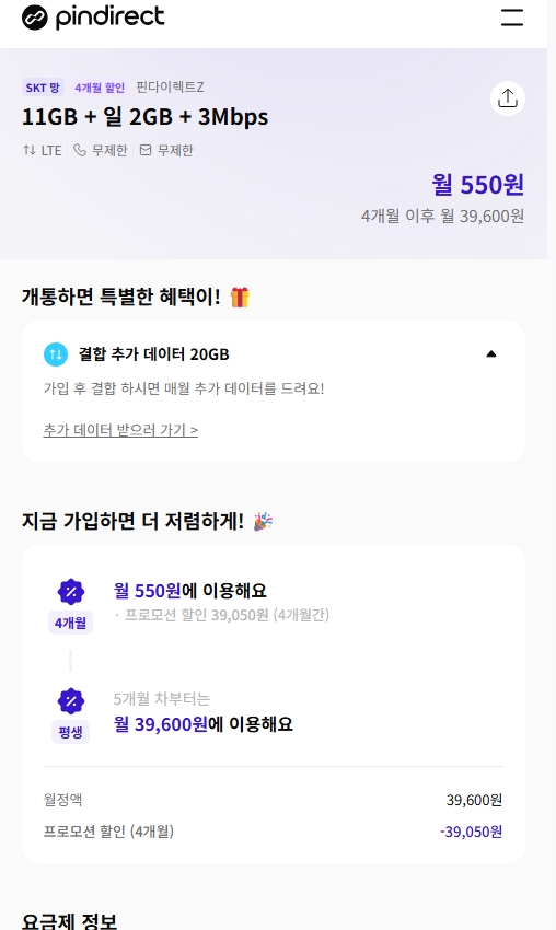 핀다이렉트SK망 120기가+5MPS 1100원, 11기가+2기가+3MPS 550원 KT망 20기가+50기가 0원 알뜰폰/뽐뿌 작성자 정보 관리자 쪽지보내기 메일보내기 자기소개 아이디로 검색 전체게시물 쪽지보내기 메일보내기 자기소개 아이디로 검색 전체게시물 작성 작성일 2026.01.16 19:09 컨텐츠 정보 819 조회 0 추천 0 비추천 목록 본문 무한 통신의 시작 Zhttps://www.yogeum.com/stkt341 0 추천 0 비추천 SNS 공유 관련자료 링크 https://www.yogeum.com/stkt341 229 회 연결 이전 핀다이렉트KT 20기가(2월~6개월간 50기가제공) + 바로유심 2만원 상품권 110원 총 70기가 작성일 2026.01.24 00:19 다음 알뜰폰) SK 알뜰망 100기가 5MPS 3300원 , 11기가+2GB+3MPS 2200원 작성일 2026.01.05 22:00 댓글 0 등록된 댓글이 없습니다. 로그인한 회원만 댓글 등록이 가능합니다. 목록